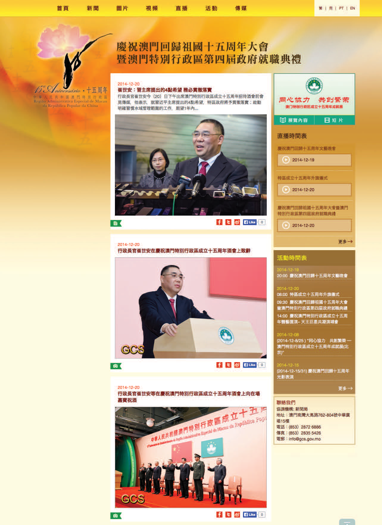 澳門政府15周年新聞網站